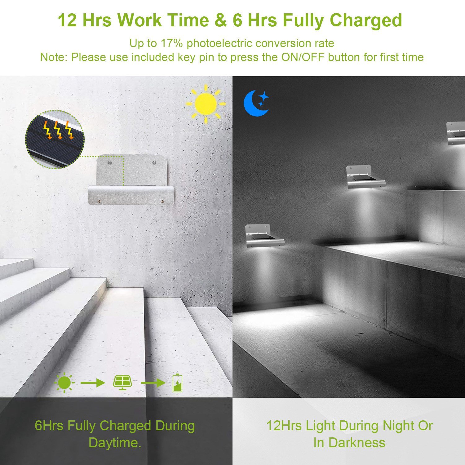 **UPGRADED INBUILT MOTION SENSOR*:Adopts advanced PIR motion sensor offers 120° wide sensing angle can detect motions up to 3m/9.84ft. The sensing range and sensitivity of our solar wall lights are both 20% higher than general LED lights,bringing ultimate using experience.